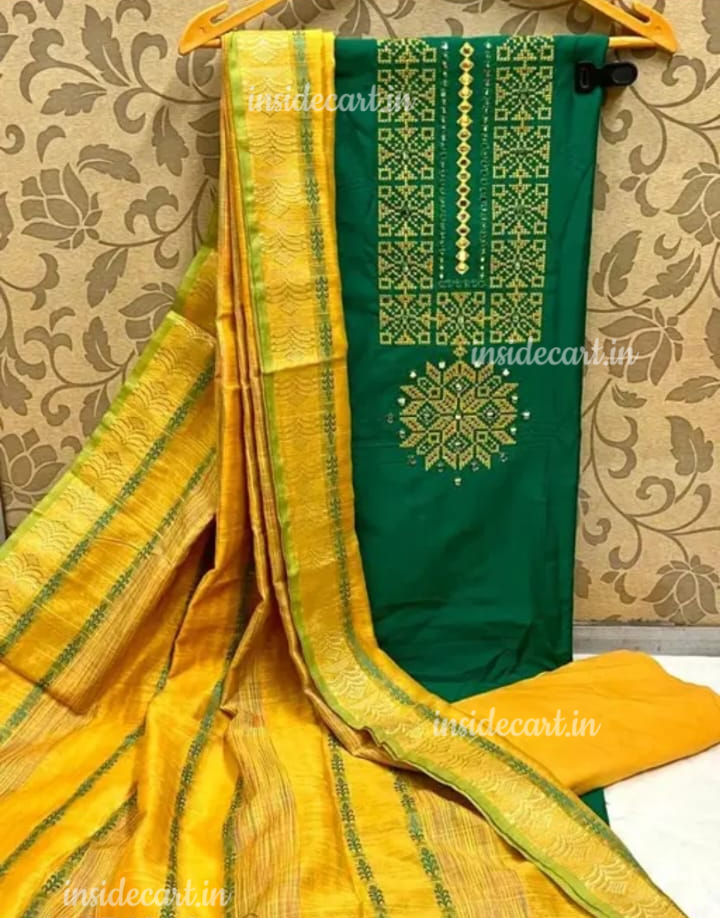Silk fabric churidar material with green & yellow combo